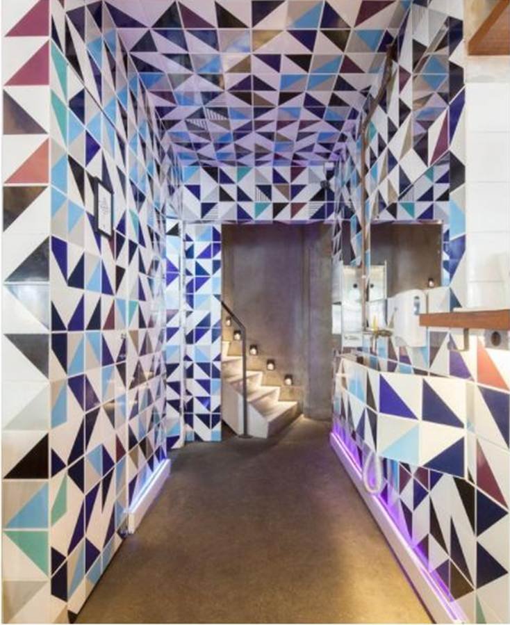 ● Compactar o ambiente: em ambientes muito amplos, cores escuras e profundas podem trazer a sensação de aconchego e intimidade. Os azulejos em tons de vinho, terracota ou tons vibrantes, aproximam as paredes e deixam o local mais acolhedor, sem perder o equilíbrio estético.