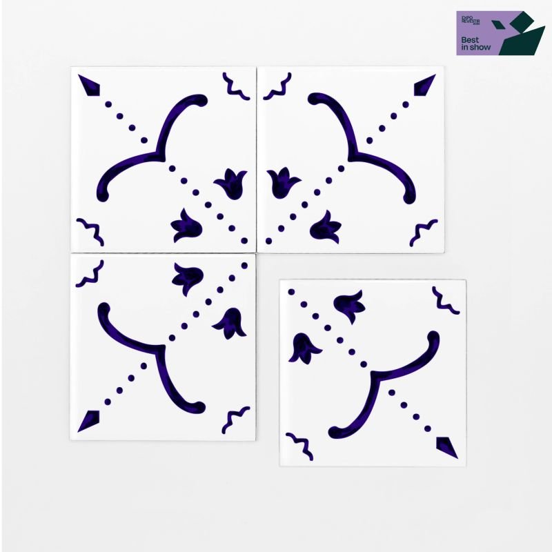 Para evocar a estética dos Azulejos tradicionais pintados à mão, nesses modelos nós trabalhamos com camadas sobrepostas de tinta durante a serigrafia. Essa sobreposição de tons de azul gera nuances no design, criando um efeito único e delicado.